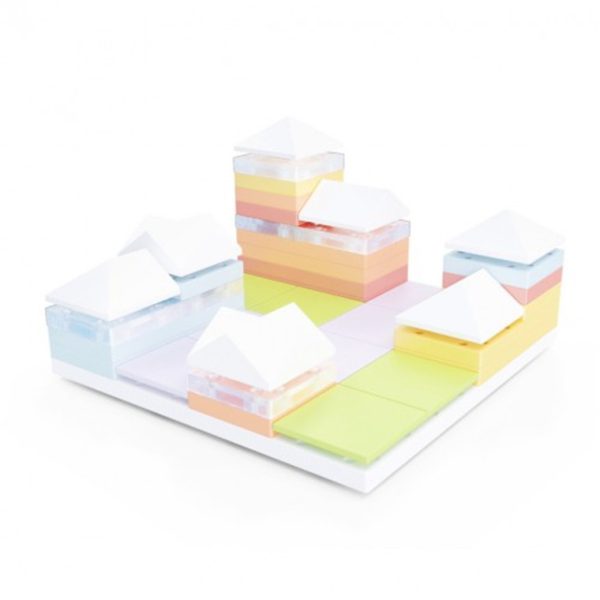 Head to your favourite capital city and create high-rises bustling streets and neighbourhoods with a selection of pastel components and classic angled roofs. Use the coloured floor tiles to represent grass roads and more – then bring your model to life within an exciting backdrop of towering skyscrapers highways rivers and parks (landscape included)!